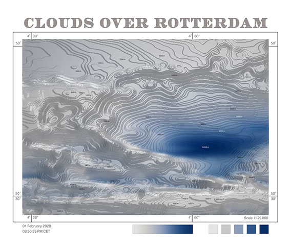 Sometimes the results looked like maps this inspired me to make topographical maps for the clouds. A place that you can visit only ones because the next moment it will be different and you might be lost.