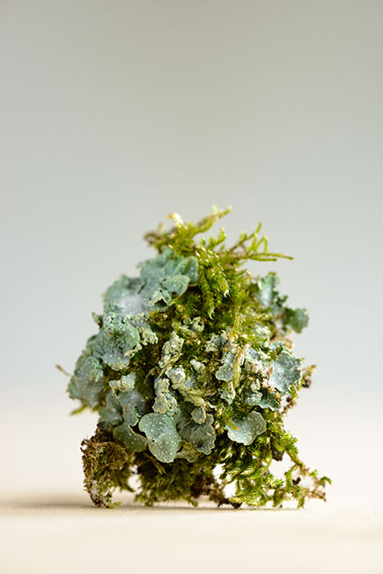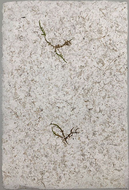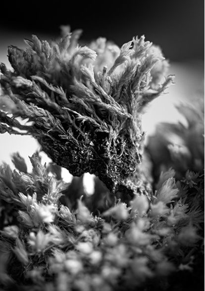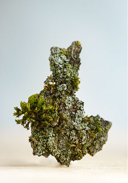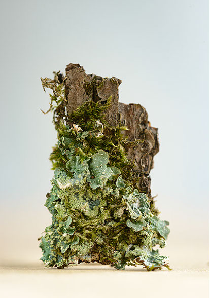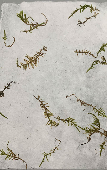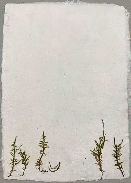A project in collaboration with Roderick Cornelissen bookbinder. I made the images of moss and lichen. Some are printed on Japanese double layered Washi paper. The book was binded in a unique edition. Half of the book are handmade moss paper.