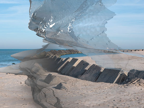 We live in uncertain times with massive tensions in the economy, our democratic politics and what is happening with climate change. I want to show what is already contained in nature but invisible for the human eye. By making a bump map based on the contrast in the photo, I show a hidden spatial experience of the photo. It looks as if the photo or, part of it, breaks open and shows what lives inside. This way a new truth is created that is a surreal representation of the pain our world is in already. We now stare at a post apocalyptic future from which we choose to look away.