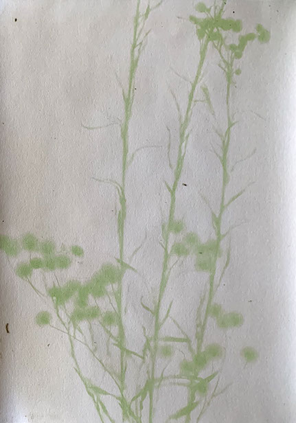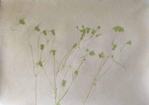Experiment with printing on paper made sensitive to the light with the juice squeezed out of spinach. First results; will continue.