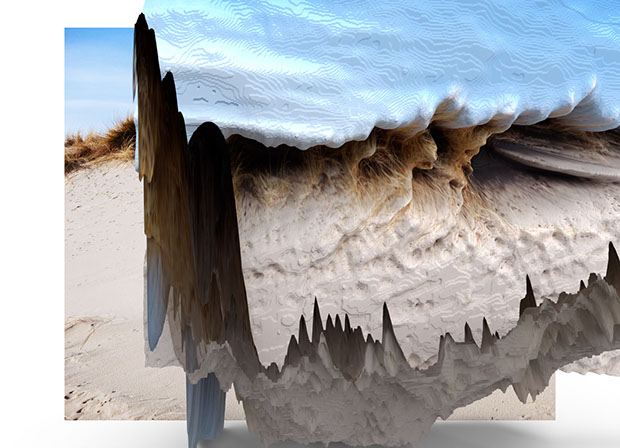 We live in uncertain times with massive tensions in the economy, our democratic politics and what is happening with climate change. I want to show what is already contained in nature but invisible for the human eye. By making a bump map based on the contrast in the photo, I show a hidden spatial experience of the photo. It looks as if the photo or, part of it, breaks open and shows what lives inside. This way a new truth is created that is a surreal representation of the pain our world is in already. We now stare at a post apocalyptic future from which we choose to look away.
