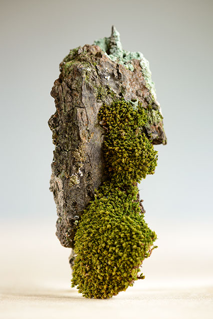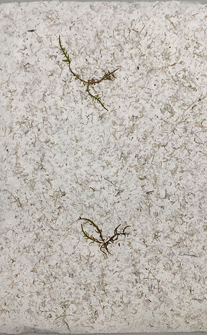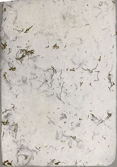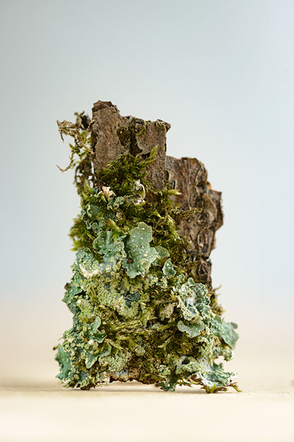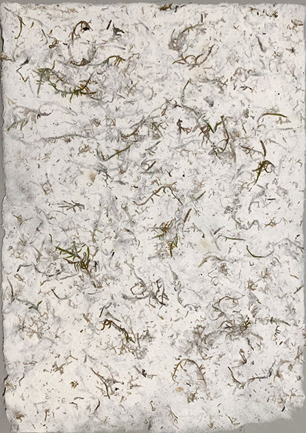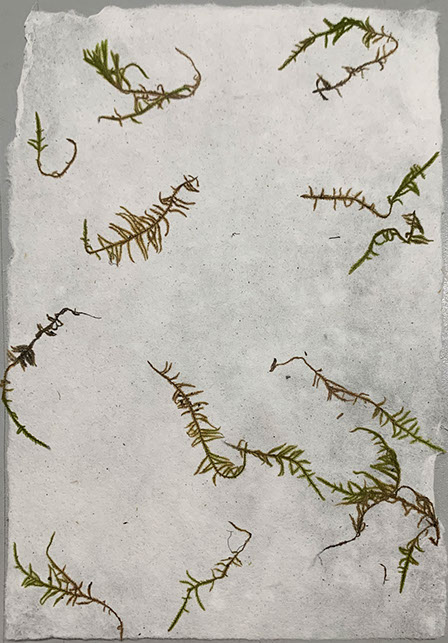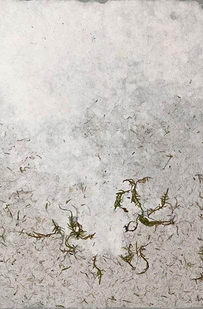 A project in collaboration with Roderick Cornelissen bookbinder. I made the images of moss and lichen. Some are printed on Japanese double layered Washi paper. The book was binded in a unique edition. Half of the book are handmade moss paper.