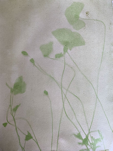 Experiment with printing on paper made sensitive to the light with the juice squeezed out of spinach. First results; will continue.